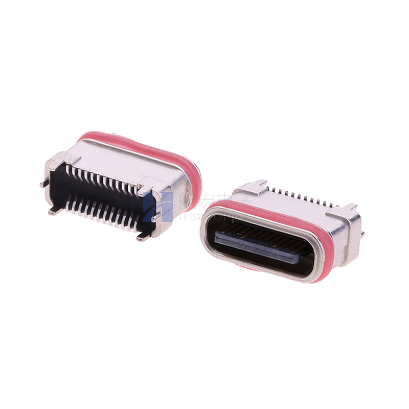Type-C母座24Pin3M沉板L9.65 防水TH&SMT 加胶圈