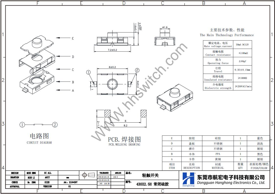 特点:产品符合 ROHS 等环保标准,体积小,寿命长,规格齐全。