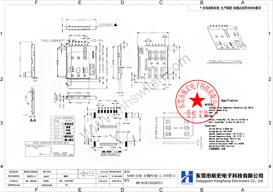 6. 绝缘阻抗: 1000 MA min / 500VDC